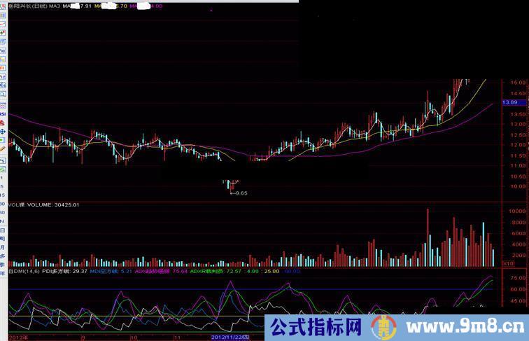 ADX趋势强弱: EXPMEMA(ABS(MDI空方线-PDI多方线)/(MDI空方线+PDI多方线)*100,MM);