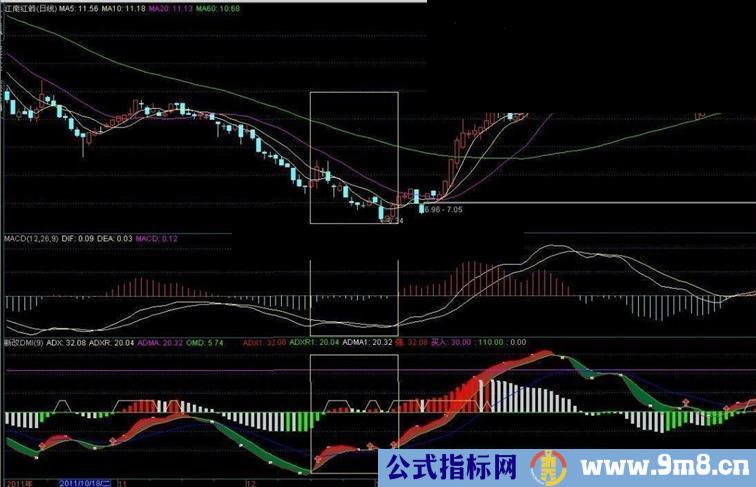强:IF(ADX1>=ADXR1,ADX1,DRAWNULL),COLORRED,LINETHICK3;
