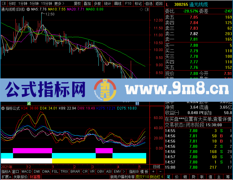 周金叉:STICKLINE(周J>周K,0,-10,4,0),COLORFF00FF;