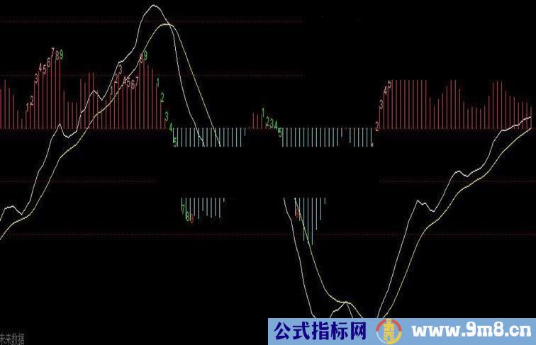 DRAWTEXT(NT=9,MACD*1.02,'9'),COLORGREEN;