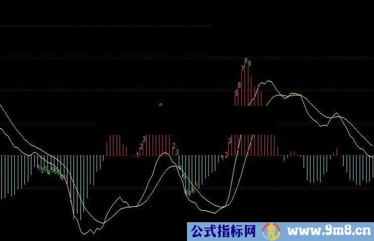 DRAWTEXT(NT=9,MACD*1.02,'9'),COLORGREEN;