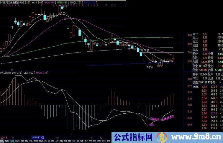 DRAWTEXT(M>30 AND DEA<-0.35 AND ABS(DEA/C)>0.035 AND DIF>REF(DIF,1),DEA,'超卖'),COLORMAGENTA;