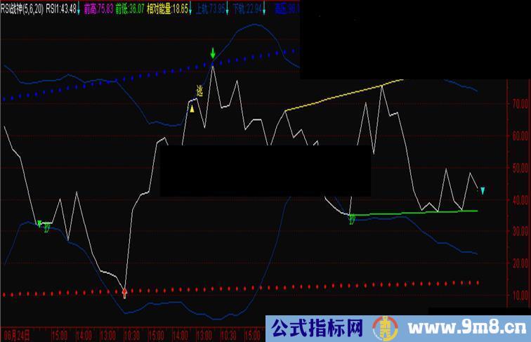 绿色向下箭头为RSI卖出;